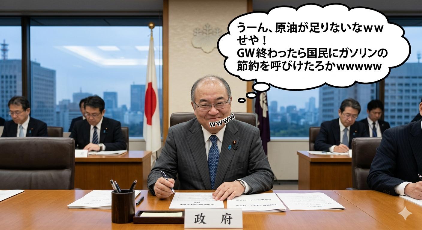 政府「うーん、原油が足りないなwせや!GW終わったら国民にガソリンの節約を呼びかけたろか!?wwww」