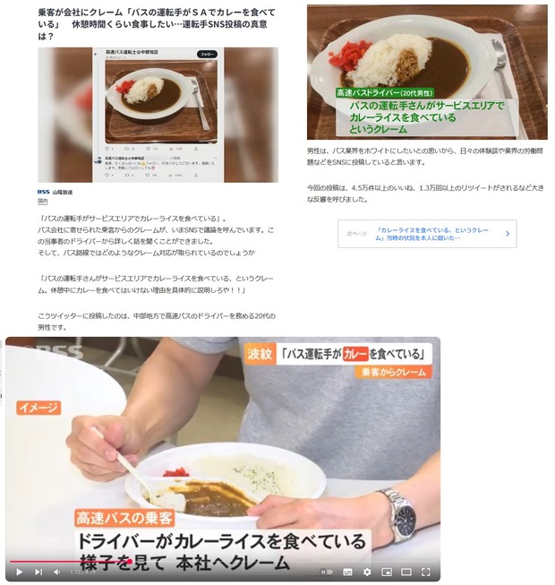 【悲報】バス運転手、サービスエリアでカレーを食べて炎上