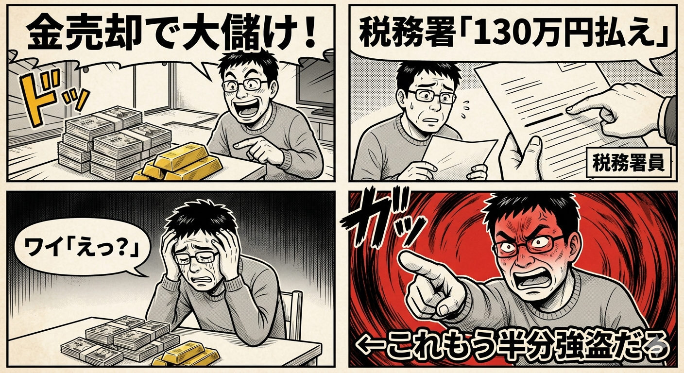 金売却で大儲け!→税務署「130万円払え」ワイ「えっ?」←これもう半分強盗だろ…